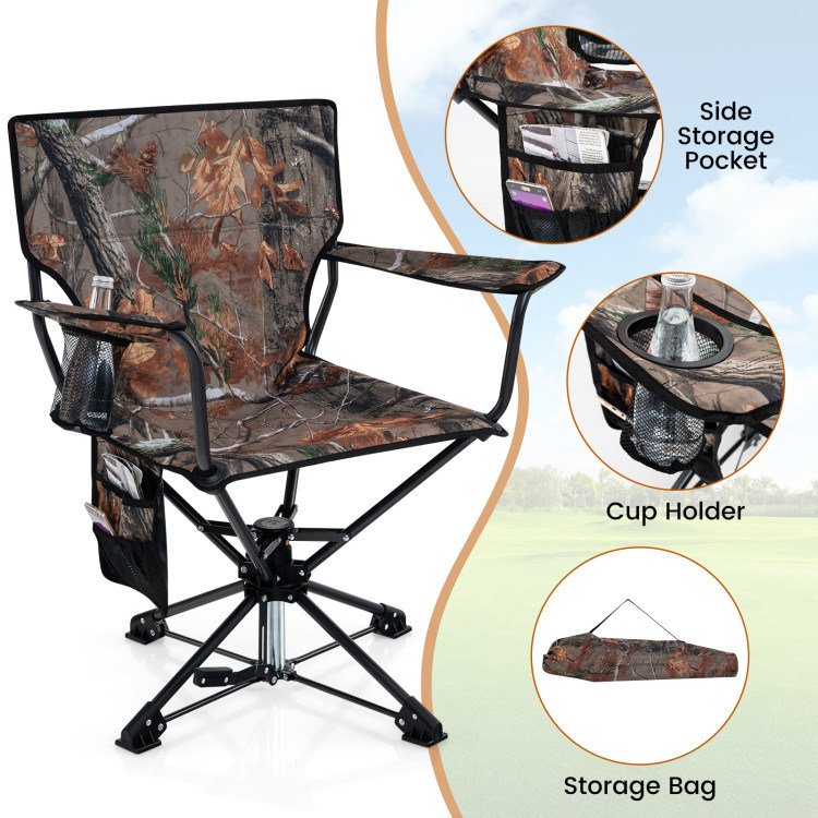 Home > 360° Swivel Hunting Chair Portable Foldable Hunting Chair with Mesh Cup Holder and Storage Pockets