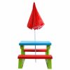 Kids Picnic Folding Table and Bench Set with Umbrella