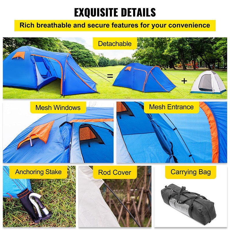 1.Camping tent provides spacious space for 3 - 6 people to move around and rest, making it a good choice for family traveling, camping, and hiking.