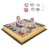 Wooden Sandbox Kids Sand Pit with Kitchen Playset Accessories for 3-8 Years Old